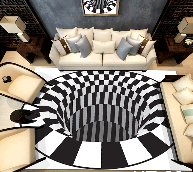 Hiệu ứng 3D từng có trong sơn sàn epoxy hay những mẫu sàn nhựa vinyl cao cấp… Thì nay, với những thiết kế thảm trải sàn hiện đại, điều này cũng không thiếu.